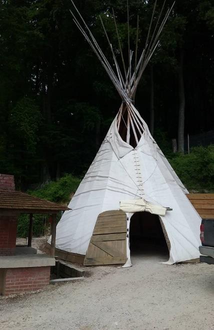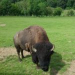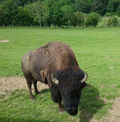 Midi et à destination changement d’ambiance, nous abandonnons l’asphalte pour une planète à découvrir : REVE DE BISONS qu’ils disent n’en déplaise aux quadrupèdes qui font l’entrée et le plat de résistance au menu. Tout est bon dans le bison mais cela on ne le saura que plus tard. Plus tard car en guise de sieste coutumière, Papi se l’ai vu substituer à une leçon de choses dans un tepee en compagnie des amis. Quand je pense qu’il m’a fallu attendre 70 ans pour tout connaître sur la vie des indiens confirme le dicton « tout vient à point qui sait attendre ». Extraordinaire narration des coutumes, activités et vie courante de ces indigènes par un animateur hors pair et passionné avec la collaboration spontanée de participants dans un souci de véracité. S’en ai suivi un temps libre que certains d’entre nous ont mis à profit pour en rajouter une couche, de bisons, par le biais d’une visite guidée, motorisée, commentée dans les pâturages du domaine. Tout a commencé par un festival d’ornières et des chemins impraticables dont mon fessier se souviendra longtemps à bord de ces véhicules à tout faire. De bisons en bisons via les biches, deux heures d’un spectacle dont on ne peut se lasser et qui, par la magie du narrateur, nous instruit et émerveille. Ps : La touffe de bison n’est pas un magma laineux arraché à grands cris des parties intimes de la bête, ou autre bipède, mais un morceau du pelage utilisé comme préservatif. Je le sais, j’y étais.