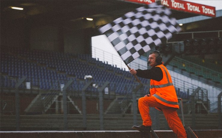 A la sortie du parking, on passe sous le panneau « entrée piste », ça y est on rentre dans l’arène. L’espace d’un instant, on se croit pilote en passant dans la ligne des stands au ralenti.