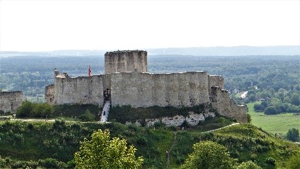 Après plusieurs kilomètres, nous faisons une nouvelle pause au château Gaillard. Il s’agit en fait d’une forteresse médiévale du XIIe siècle en ruine qui se situe au cœur du Vexin normand, à 100 km de Paris dans la commune des Andelys (Eure). Elle est bâtie sur une falaise de calcaire dominant un grand méandre de la Seine