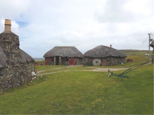 Jeudi 29 juin, nous décidons de faire le tour de l’Île de Skye ; nuageux, très venteux et froid. Mais un joli roadbook d’environ 250km nous permet de découvrir les bords de mer et l’intérieur de l’île, avec des petits hameaux ici et là. Nous nous arrêtons vers un minuscule musée à ciel ouvert de maisons avec des toits en chaume. Pour le repas de midi, notre groupe repère un manoir avec terrain de golf au bord de l’eau, l’Hôtel Skeabost ; repas succulent servi dans un cadre agréable, avec de grandes baies vitrées donnant sur un bras d’océan. Le Fish and Chips est à recommander ! Nous terminerons les derniers miles sous la pluie, les plus férus toujours Topdown ! Toute l’équipe se retrouve pour le repas du soir à l’hôtel. Soulignons les 30 ans de Thibaud à qui nous avons réussi à faire boire de l’alcool pour fêter ça !