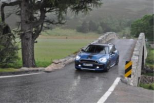 Mardi matin, 27 juin, grosse pluie : On est en Écosse ! Nous devons tout d’abord passer à la Concession MINI pour remplacer un balai d’essuie-glace envolé ! Puis hop, autoroute jusqu’à Perth avant de nous élancer sur de belles routes direction Inverness, en visitant le Parc National Cairngorms et empruntant en partie la mythique Highland Tourist Route. La pluie cesse dans l’après-midi et les paysages défilent, plus beaux les uns que les autres, parmi une flore très variée, avec fougères à profusion et rhododendrons sauvages en fleurs, passant par des forêts de sapins, des routes bordées d’arbres comme de longs tunnels, de grandes plaines où paissent des centaines de moutons. Lièvres, écureuils et oiseaux tétras traversent régulièrement la route. Arrivée à Inverness en fin d’après-midi après quelques 300km de bitume. Un petit tour à pied dans la ville nous donne l’opportunité d’assister au cortège d’une fanfare en tenue écossaise jouant la musique traditionnelle avec cornemuses et tambours. Ensuite s’ensuit une vaine recherche d’un restaurant pouvant tous nous accueillir.